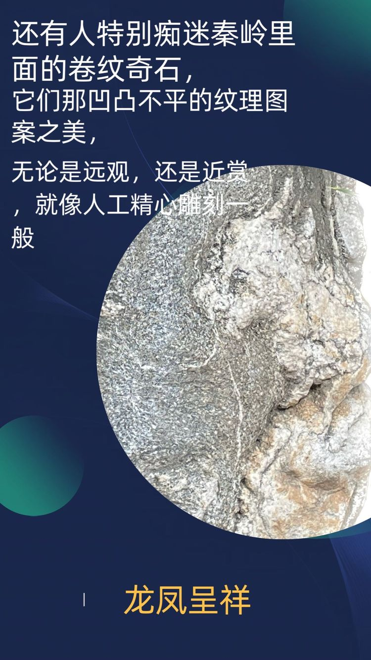 秦岭山系受地质变动及外力的长期作用,岩石裸露,经雨雪流水侵蚀,切割和分化形成了丰富的观赏石资源,山峦沟壑,大河小溪遍布奇石,大者如楼,小者手可把玩。