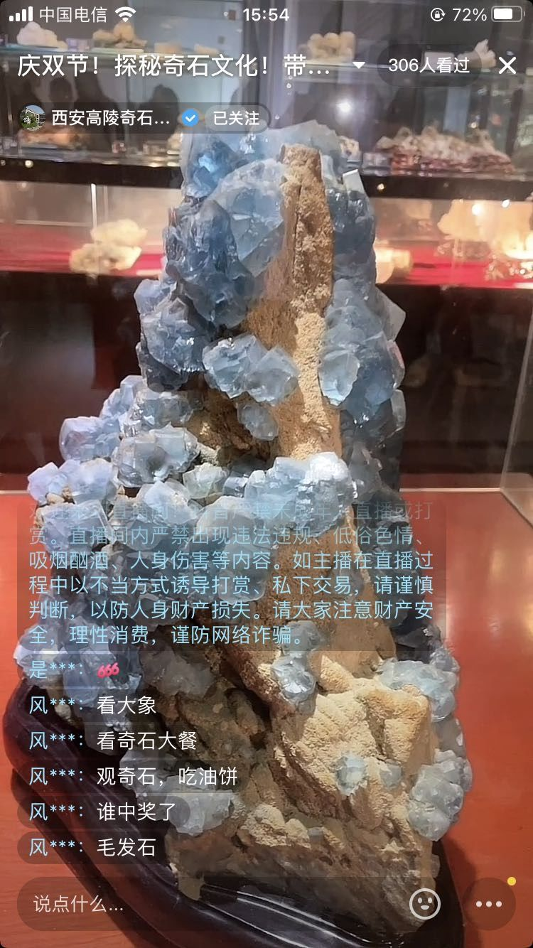 此次活动分为四个板块,分别为神秘的化石、千奇百怪的奇石、晶莹剔透的矿物晶体和垂涎欲滴的石宴,在线上带领游客们体验极具特色的“庆中秋!探秘奇石文化”直播主题活动,整场直播点击量近万人次。