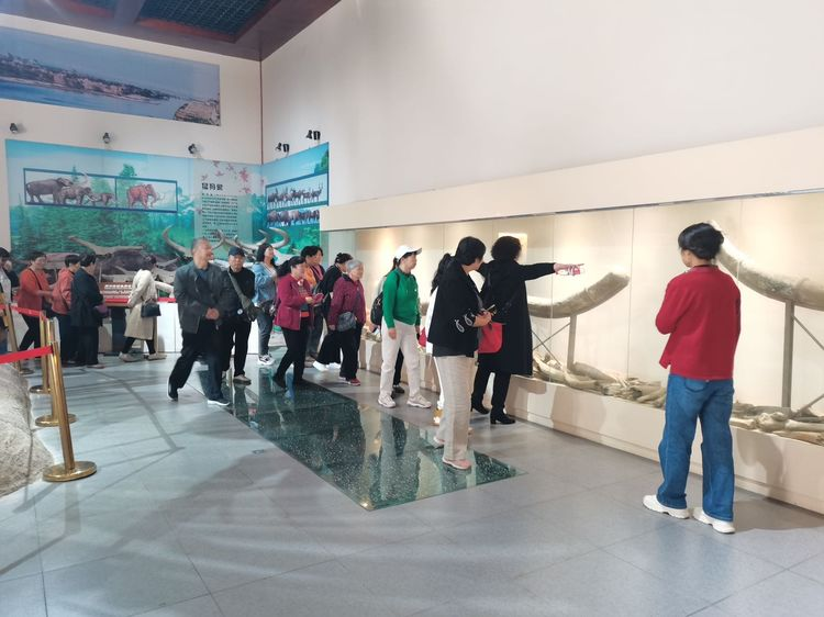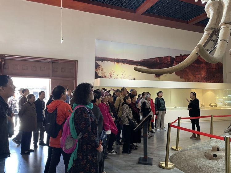 跟随讲解员的脚步,老人们一进入化石馆便纷纷聚集在古象的周围,赞叹着高大,威猛的剑齿象。