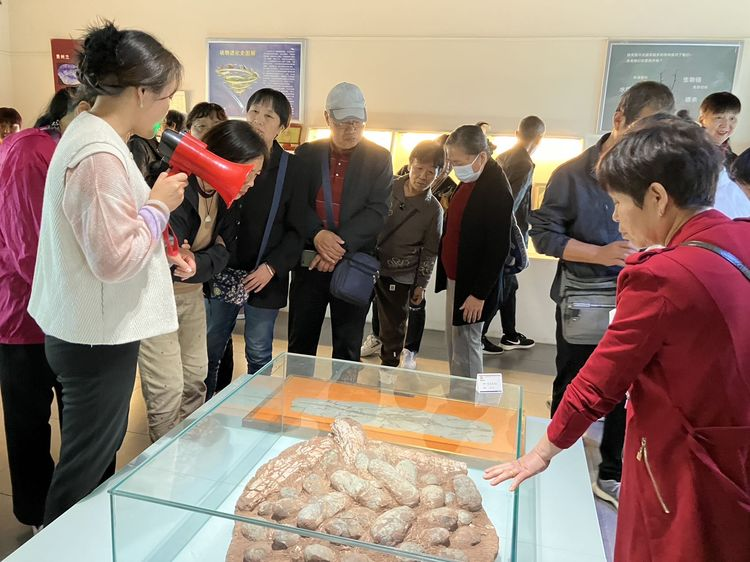 讲解员向老人们讲解了化石的形成、类别及生物进化等知识,让老人们深刻体验到了远古生命的奥秘。