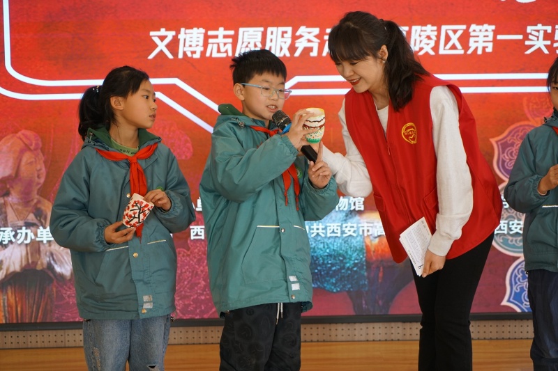 西安市高陵区第一实验小学党支部书记、校长赵荣香感谢“学习强国”陕西学习平台、西安学习平台和陕西历史博物馆志愿者给参与活动的师生带来的文化盛宴,“此次活动让孩子们在校园内‘遇见’博物馆,切实感受到中华传统文化的魅力。”