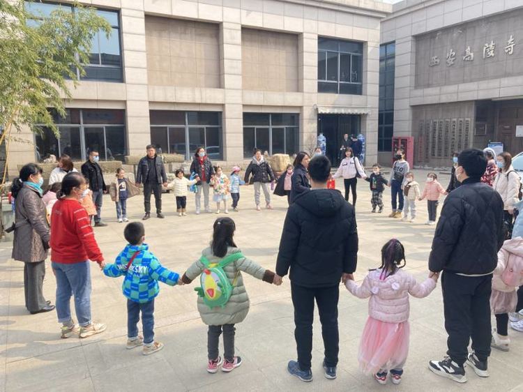 14:00分学生与家长在博物馆内集合,参观前老师们带领大家做小游戏;