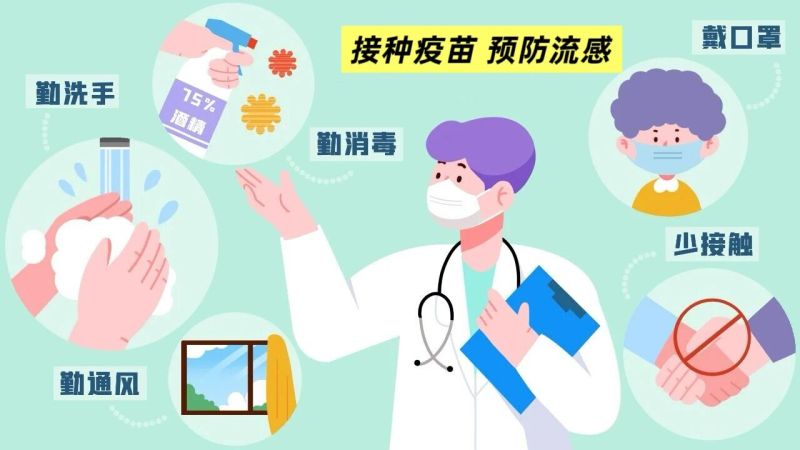 1.及时接种疫苗:每年接种流感疫苗是预防流感经济、有效的手段。9—10月是最佳的接种时间,如错过时间,整个流行季内仍可接种。