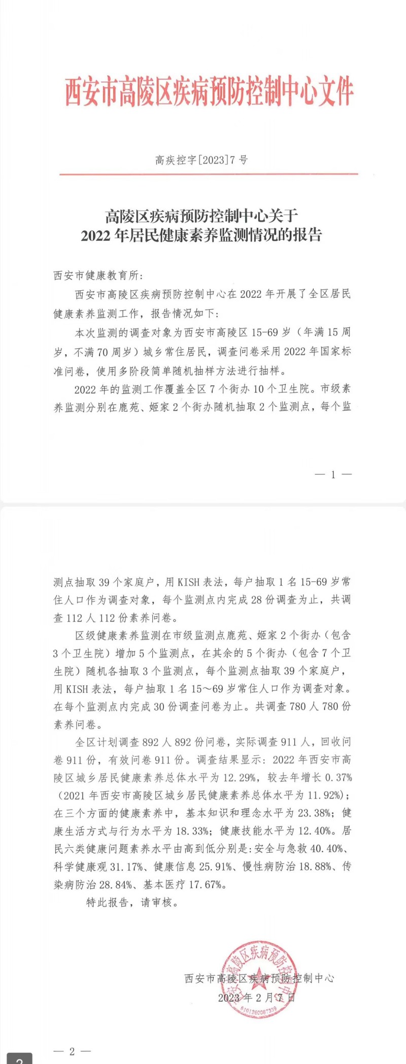 高陵区疾病预防控制中心关于2021年居民健康素养监测情况的报告