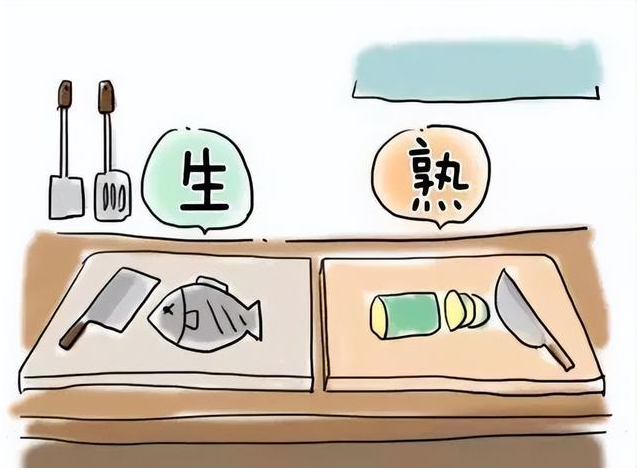2.家庭制备食物时要注意生熟分开,加工和盛放生肉、水产品和蔬菜的器具要与熟食分开,使用后要及时清洗消毒;特别处理畜禽肉类和水产品类食品时更要注意,在冰箱储存时也要分隔存放。