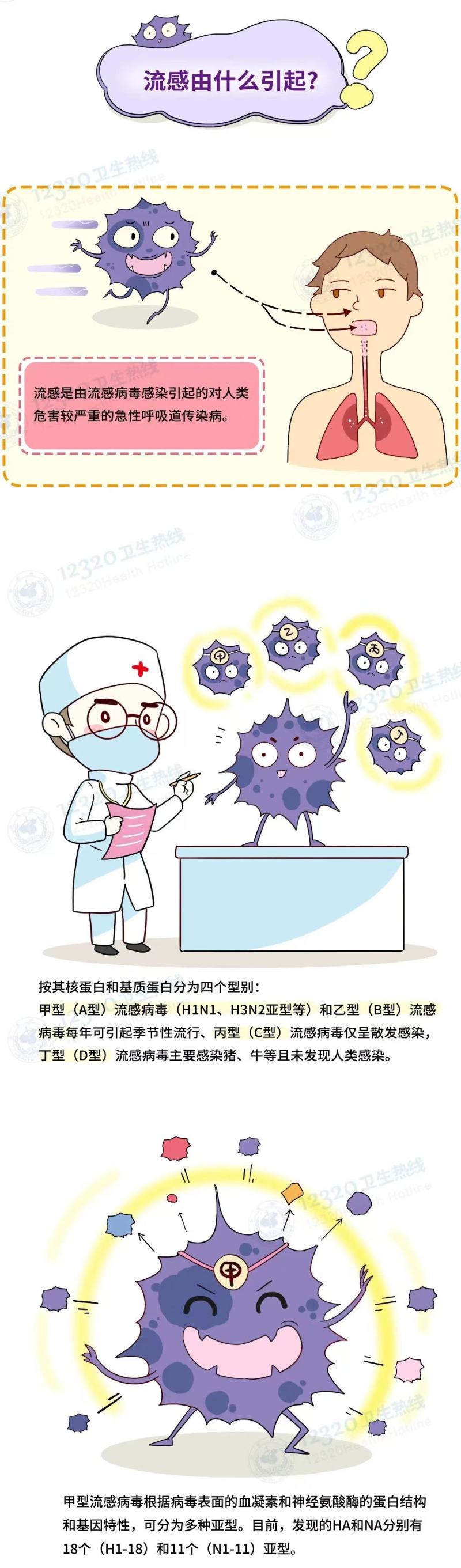 流行性感冒,简称流感,是由流感病毒引起的一种急性呼吸道传染病。流感病毒可分为3个亚型,甲型流感、乙型流感、丙型流感。其中造成人体感染且季节性流行的主要是甲型、乙型流感病毒。流感病毒的抗原性易变,传播迅速。每年的10月份至次年3月份,是流感等呼吸道传染病的流行季。