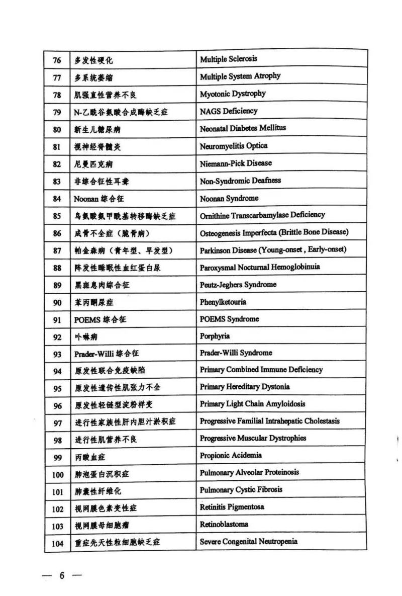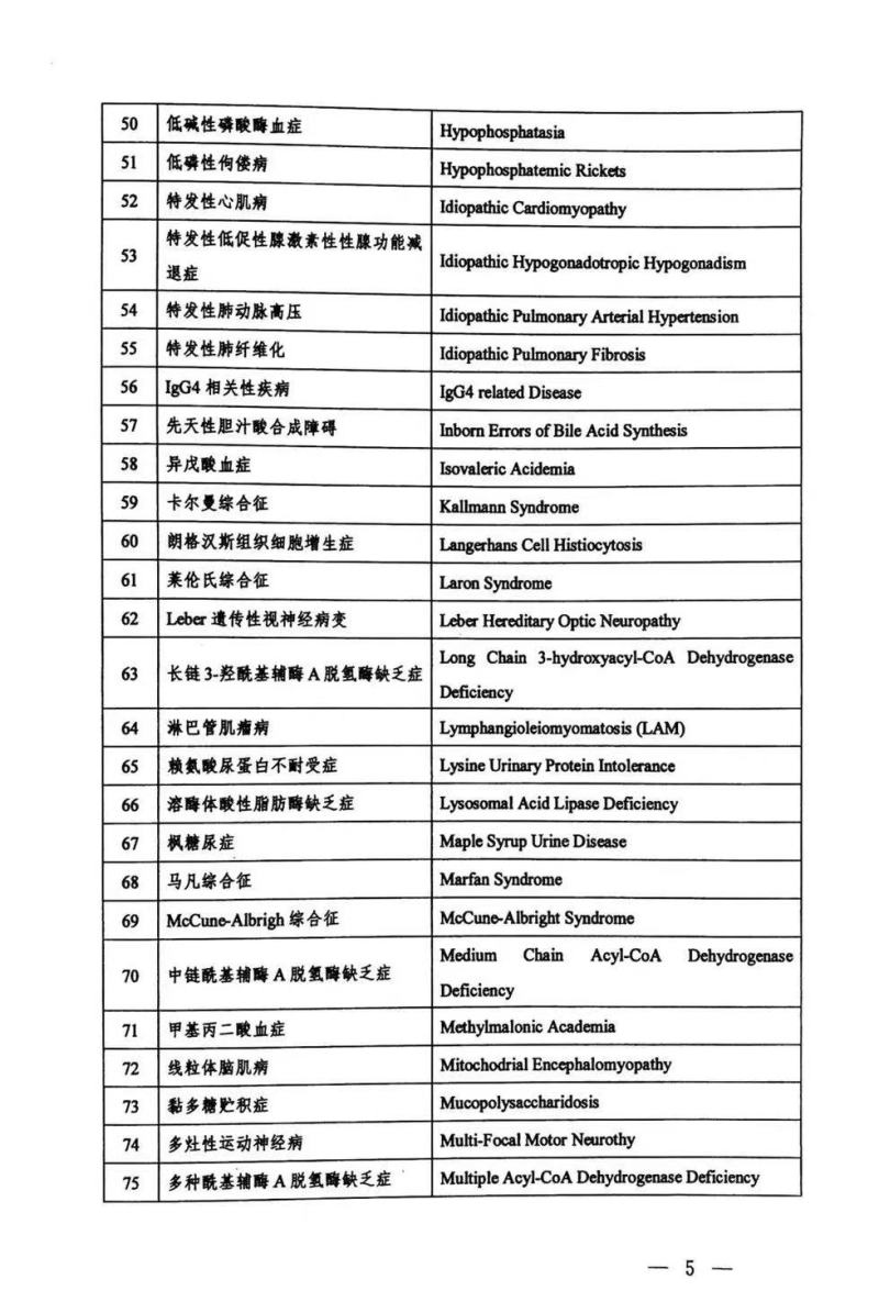 五部委联合发布国家首批罕见病目录