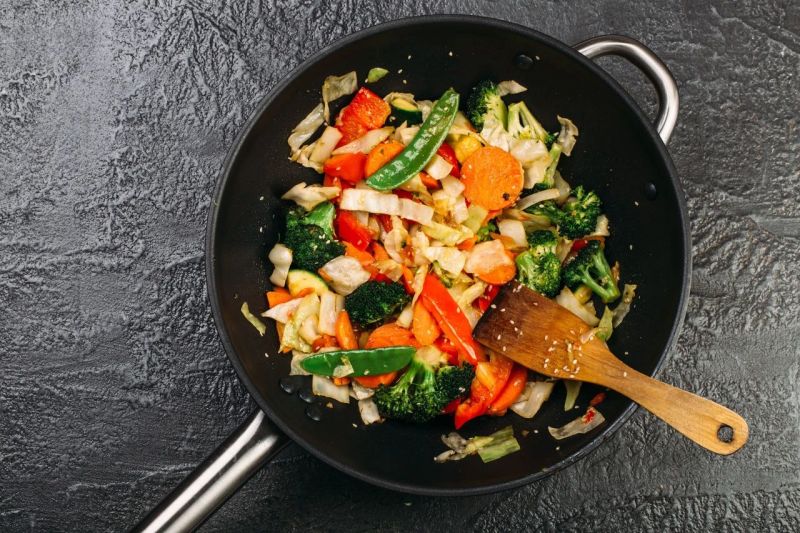 热锅冷油、大火快炒,不要等到油冒烟再放菜,家中最好有一个能测油温的金属温度计;炒之前还可以先将食物焯水到半熟,减少高温烹饪的时间。