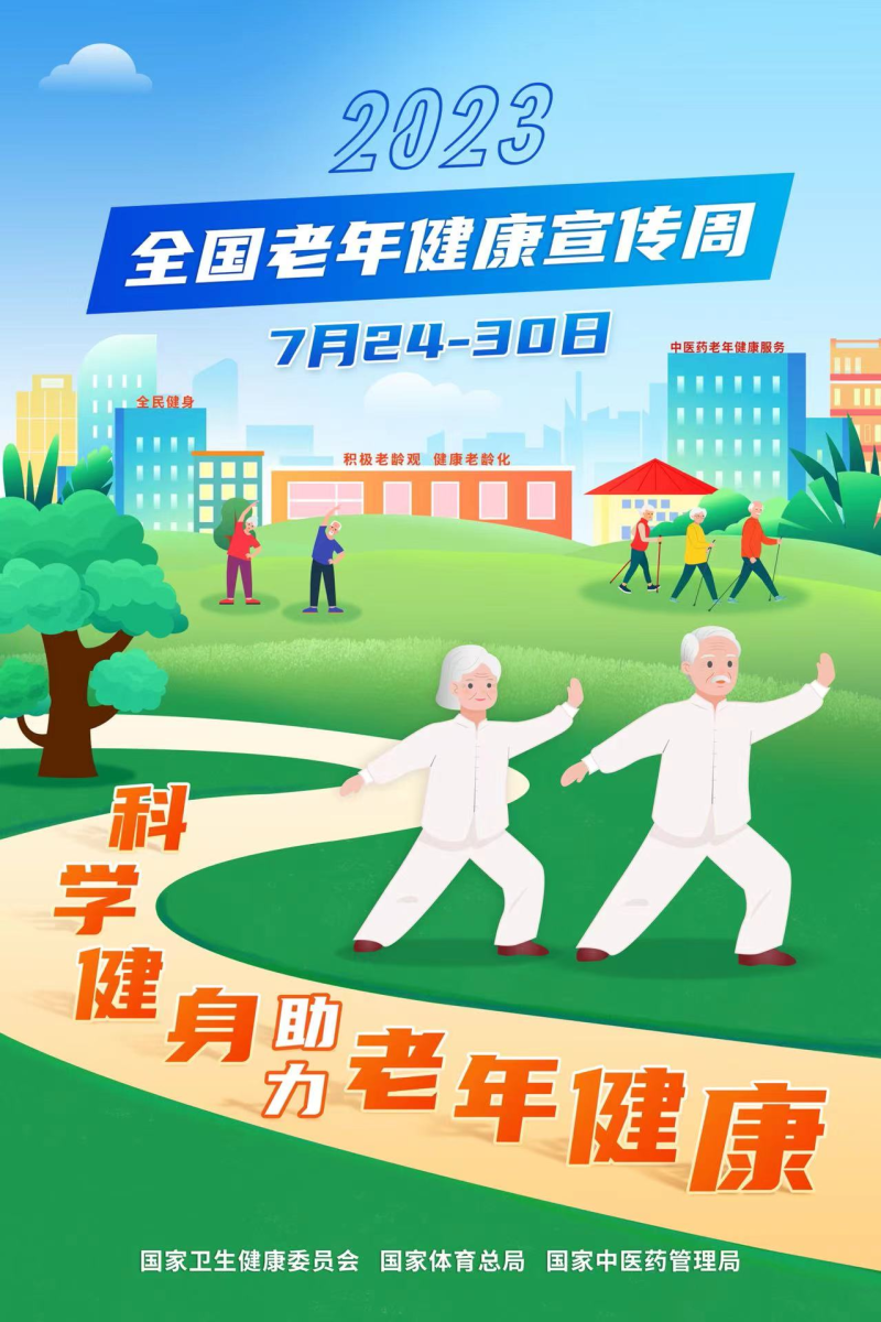 为宣传普及老年健康政策和科学知识,切实提高老年人健康水平,国家卫生健康委会同国家体育总局、国家中医药管理局,以“科学健身助力老年健康”为主题,于2023年7月24日-30日组织开展2023年全国老年健康宣传周活动。