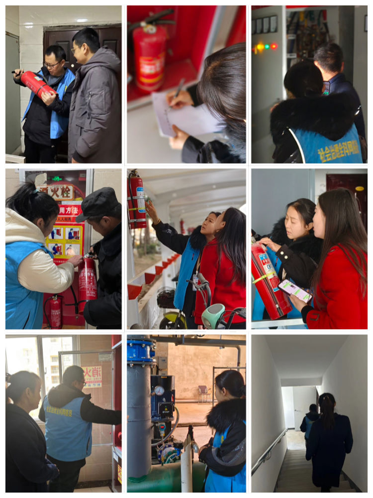 “消防通道不能杂物堆放”,电动车不能飞线充电” ,“楼层消防设施、灭火器材完善”,社区网格员穿梭于楼宇之间,提醒居民注意冬季用电、用气安全,禁止燃放烟花爆竹,重点关注走访独居老人居家安全,切实做到防患于未“燃”。