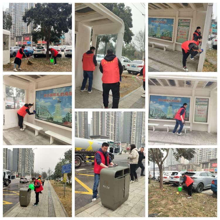 对公交站牌及垃圾桶进行了擦洗,并对绿化带中的垃圾进行清扫,大家分工协作、分区清扫,争先恐后、配合默契,经过大家的共同努力,公交站牌处面貌焕然一新。在此次行动中,大家充分发扬了无私奉献精神,发挥了先锋模范作用,用自己的实际行动践行“我奉献、我快乐”的志愿服务精神。
