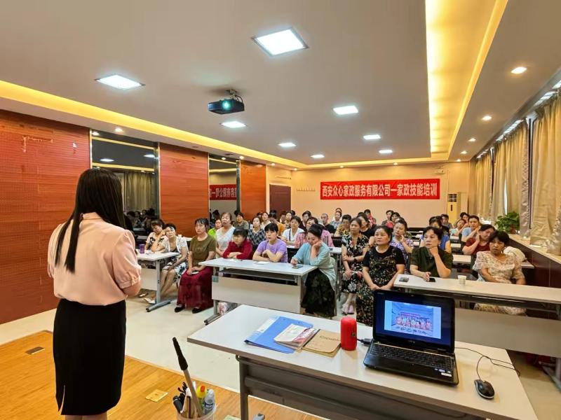 培训现场,李老师采用“理论+实操”的教学方式,详细讲解了家庭保洁、衣物收纳、衣物清洗与护理、家政员的就业前景等方面的知识。