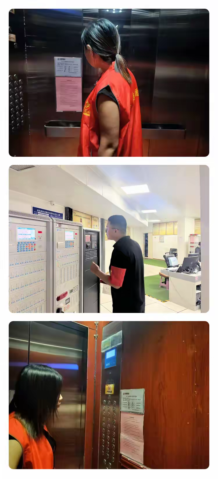 接着,他们走进了社区的配电室和电梯间。检查电力设备的运行情况,确保用电安全;仔细查看电梯的维护记录和运行状况,保障居民上下楼的安全。