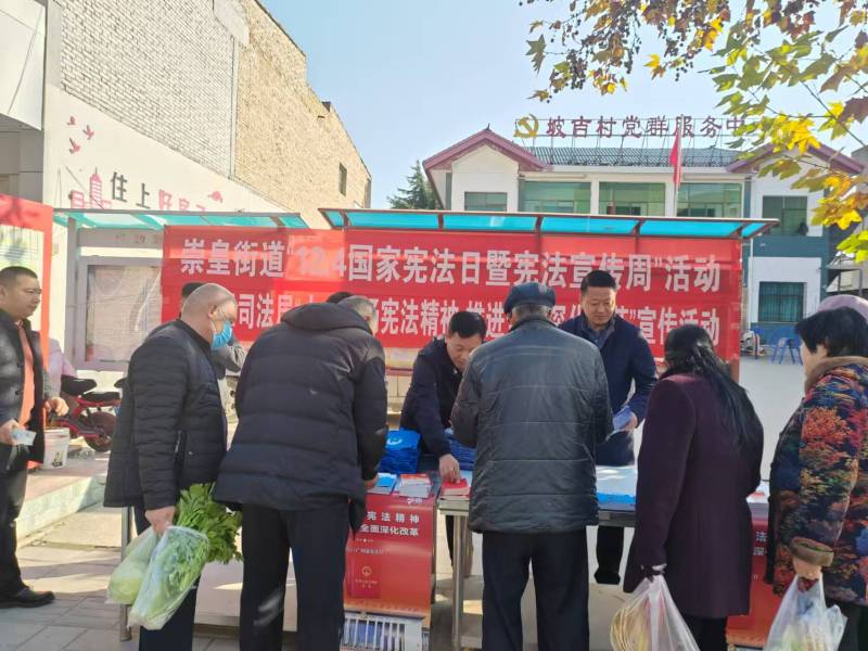 12月3日,崇皇街道平安法制办、崇皇司法所利用崇皇集市在坡吉村委会门前开展宪法宣传活动,“面对面”宣讲法律,“心贴心”服务群众,迎接“国家宪法日”。