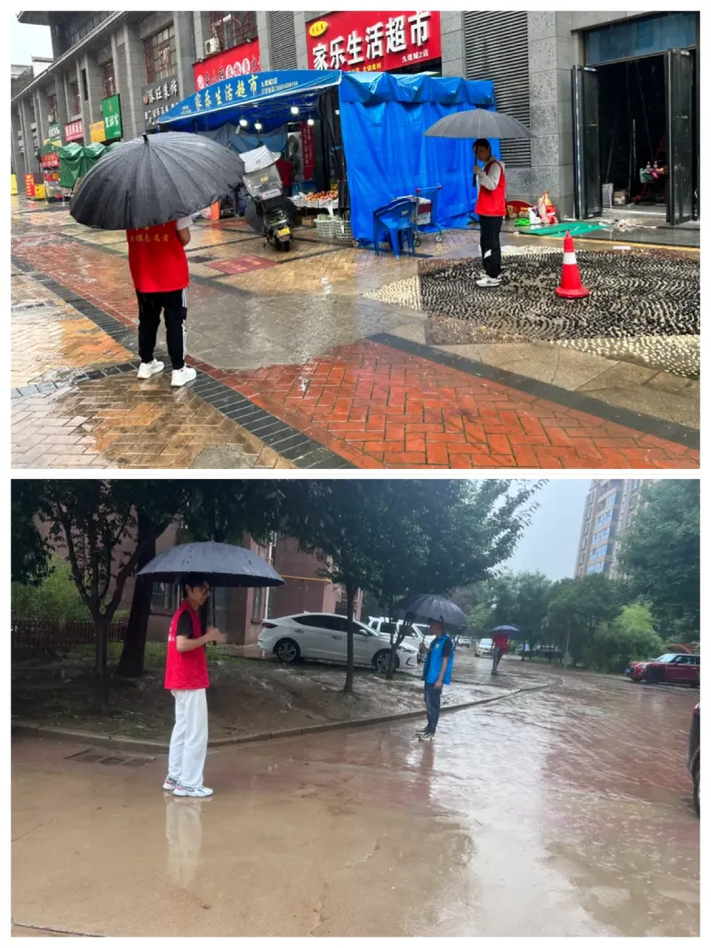 除此之外,最近天气异常,时有大雨。社区工作人员带领大学生志愿者进行防汛隐患排查工作,确保社区内积水问题及时得到整改。