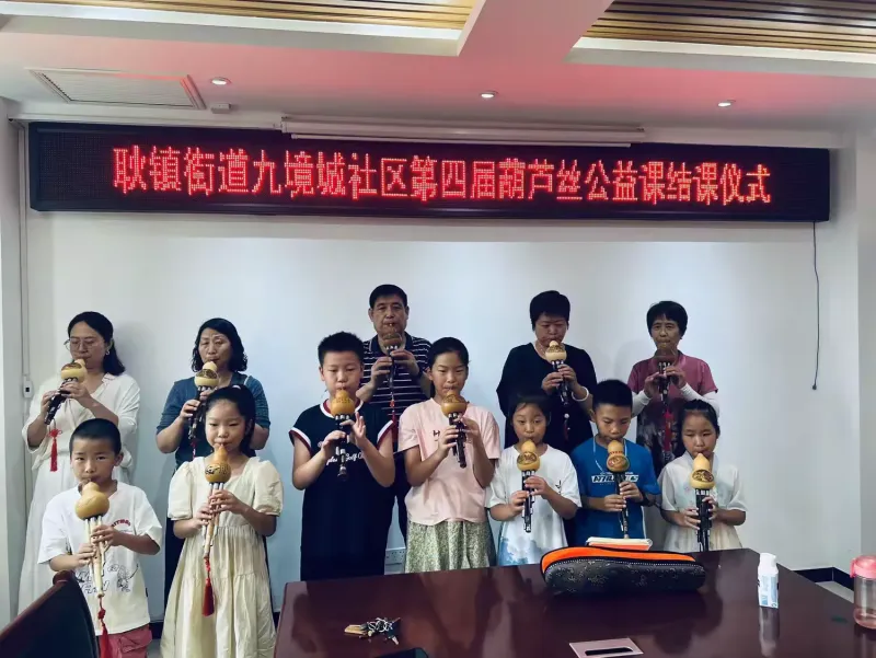 7月31日,耿镇街道九境城社区第四期暑期民乐公益培训落下帷幕,学员们沉浸在醉人的葫芦丝、洞箫音韵里,学习了葫芦丝演奏技巧,收获了成长,也收获了快乐,得到了愉快地艺术熏陶。