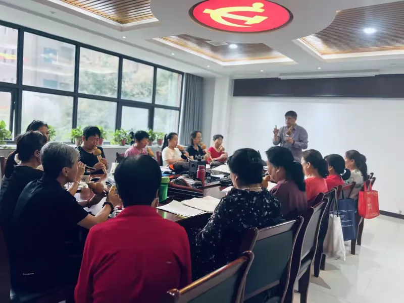 课堂上,张老师从葫芦丝的简介、按孔方法、演奏姿势、气息的运用等最基础的知识讲起,边讲边演示。随后渐渐入门练习,学习各种音阶的练习、长音、连音、强弱音、循环换气、打音等。老师耐心的对学员进行指导,收到学员们的一致好评。
