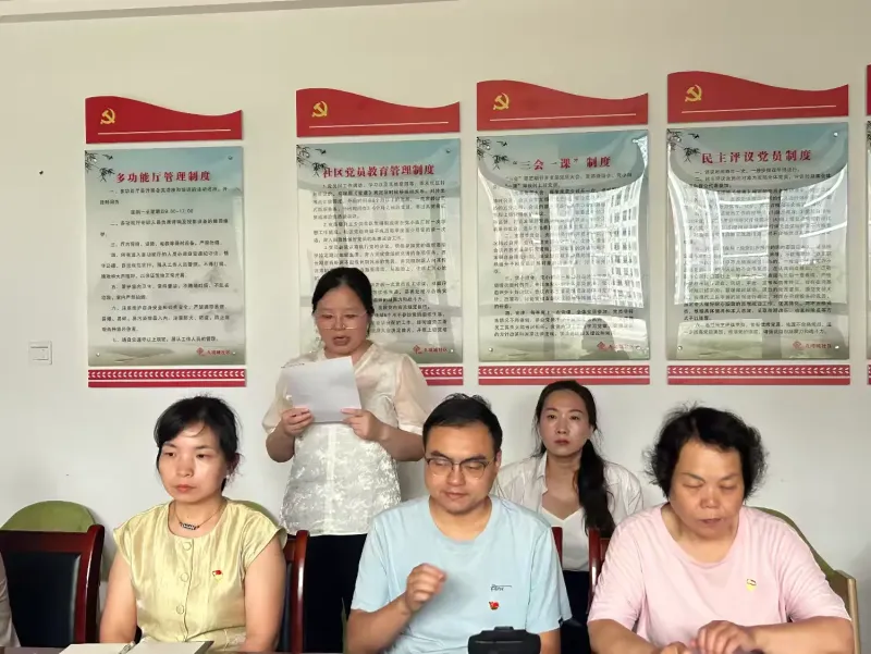 最后,社区书记闫俏姿同志以PPT的形式从党建引领工作、社会治理、嵌入式服务、安全工作、为民服务、文化宣传等方面进行回顾总结上半年工作成效。接着,社区书记详细汇报了近期社区重点工作,号召广大党员不断提高党性修养,牢固树立全心全意为人民服务的宗旨,充分发挥先锋模范作用,时刻谨记责任担当是共产党员的忠诚使命。并表示下半年,社区将积极探索社区服务新模式新路径,在政策宣传、志愿服务、党员先锋作用发挥、大气污染防治、环境整治、社区嵌入式服务、“456”入户走访等当面,以高度的大局意识,履职尽责,带领社区广大党员和群众勇于担当,奋力实干,推动社区各项工作的高质量发展。