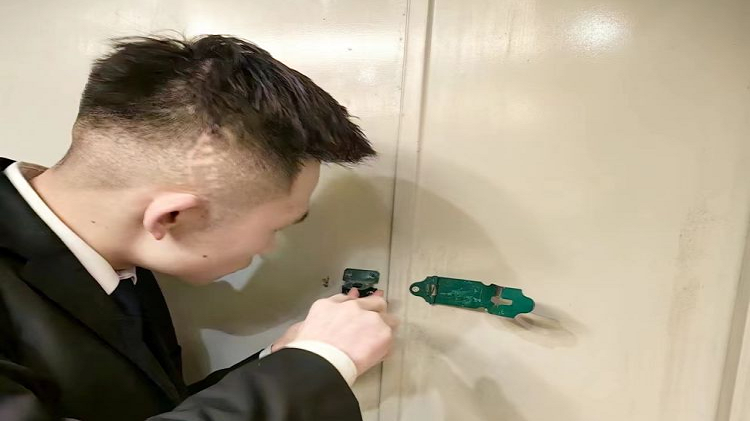 在检查过程中发现御锦庄园足浴店的防火门上安装锁扣,现场要求进行拆除。