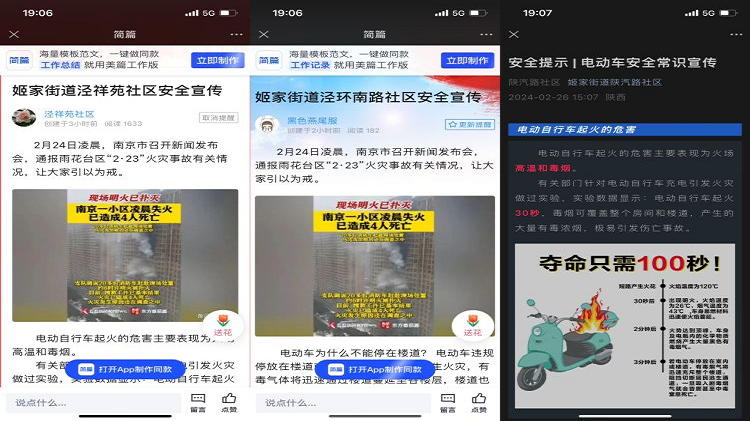 同时,街道各村(社区)通过微信群、朋友圈等方式进行消防安全知识宣传,提高居民安全意识和火灾自救能力。