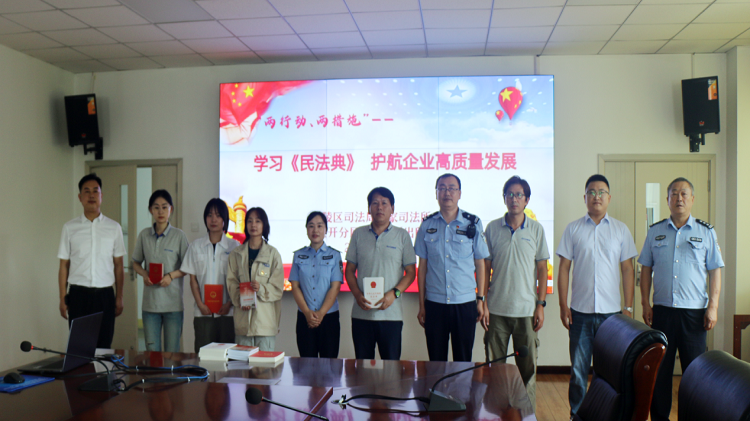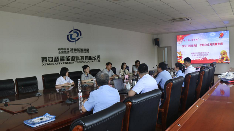 5月14日下午,姬家司法所联和泾渭园派出所、高陵区148法律服务所及阳光村镇银行姬家支行走进西安瑟福能源科技有限公司,以“学习《中华人民共和国民法典》护航企业高质量发展”为主题开展法律进企业宣传活动,推进“两行动、两措施”走深走实。