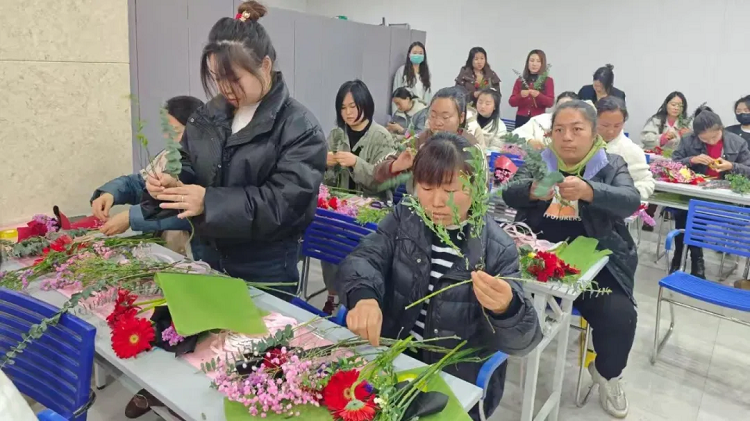 花艺技能培训课程自开课以来,便受到了辖区居民的热烈欢迎和一致好评。该课程涵盖花艺基础知识、花卉养护、花艺设计原理等内容。经验丰富的花艺讲师不仅传授专业知识,还经常分享自己的宝贵经验,为学员们准备大量花材以供练习,带领她们进行插花、制作花环、花篮等实践操作,引导学员发掘自己的创造力、提升审美力,设计出独具匠心的花艺作品。经过系统培训,许多学员不仅掌握了花艺技能,更在此基础上成功创业。学员王女士心花怒放地说道,“自从有了孩子后我一直没有工作,感觉生活没有方向,通过参加培训,现在还开了一家花店,生意很不错,缓解了很大一部分经济压力”。