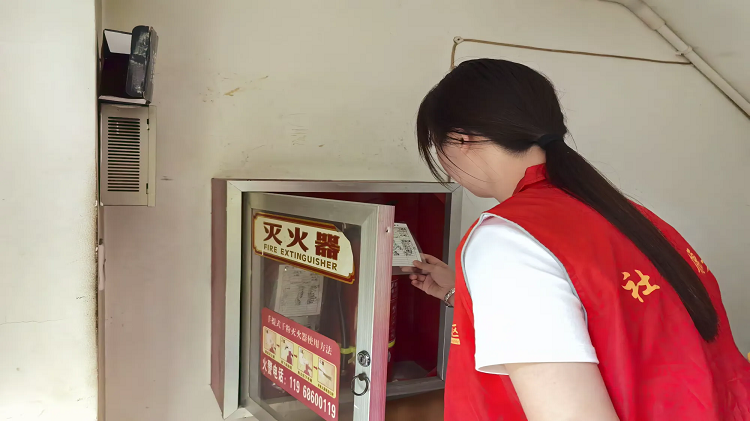 社区工作人员对商户消防器材的配备情况、灭火器的使用情况、安全出口是否畅通等情况进行了排查;同时进入楼栋检查楼道消防器材是否有效,地下室无杂物遮挡,严禁在消防柜前、安全通道乱堆放杂物,自觉做好定期检查,提高居民安全防范意识。