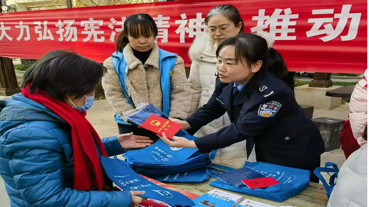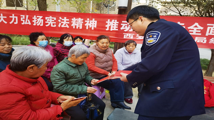 在第十一个“国家宪法日”到来之际,为进一步弘扬宪法精神,提高辖区居民法治意识,姬家司法所联合泾河派出所在泾环南路社区开展“宪法进社区”宣传活动。