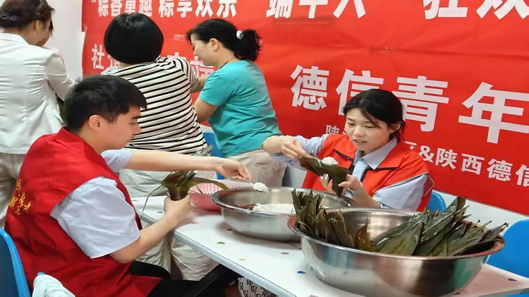 活动现场,社区志愿者与孩子们围坐在一起,捋粽叶、填糯米、绑棉线,指尖翻飞间,一只只饱满的粽子堆叠成山。随后,大家带着包好的粽子、五彩绳、艾叶、香包等节日慰问品,走进辖区孤寡老人家中。“杨阿姨,端午安康!尝尝我们包的粽子……”志愿者们一边将包好的粽子递到老人手中,一边陪着老人唠家常、帮忙挂艾叶,欢声笑语与粽叶清香交织在一起,让老人们在传统佳节感受到浓浓的关怀与温暖。