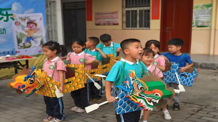 与此同时,社区活动广场上,小朋友们的欢呼声此起彼伏。投壶、旱地龙舟等游戏趣味十足,只见孩子们手持箭矢,全神贯注地瞄准竹壶投掷;在旱地龙舟游戏中,孩子们齐心协力地“划”动龙舟,家长们在一旁加油呐喊,现场气氛热烈,赢得比赛的小朋友们可以获得五彩绳、香包、玩具等奖品。孩子们手腕系上五彩绳,胸前挂上香包,在欢声笑语中感受端午文化的魅力。