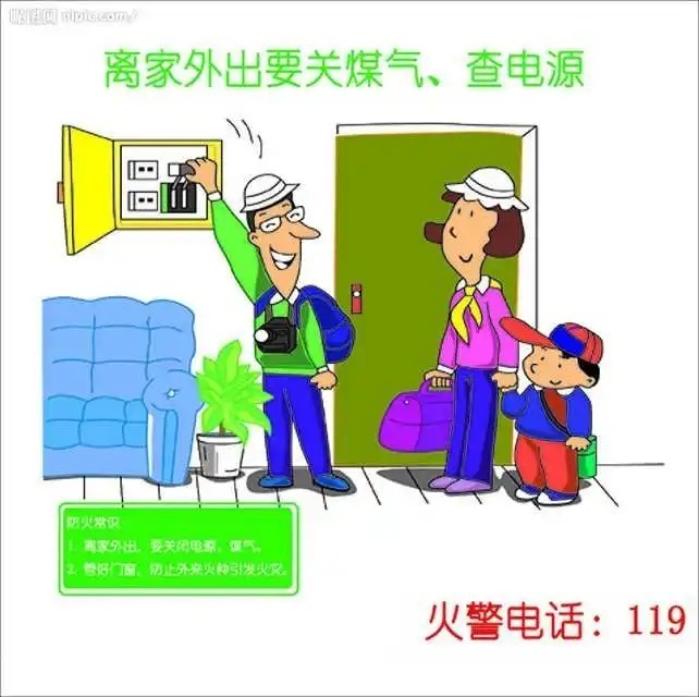 三是如返乡过节或外出旅游,务必关掉家里水、电、气等总阀,关好门窗。