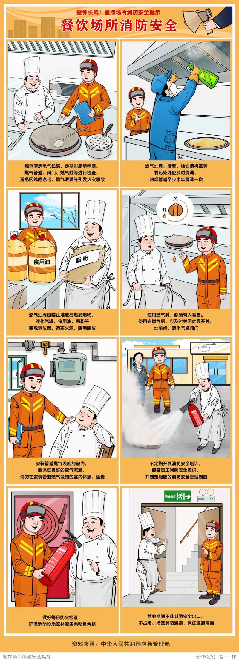 六是正常营业的餐饮门店、夜市摊点要定期检查用电、用气、用水安全,特别是要在指定地点购买、充装燃气罐;春节歇业的餐饮门店、夜市摊点,务必断电、断气、断水。
