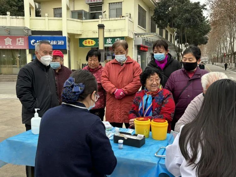 社区联合康宁医院、团圆口腔,在金凤广场开设义诊服务点,为辖区的老人们开展健康义诊及免费体检活动,耐心解答老人们咨询的各类健康问题,对患有高血压、糖尿病等慢性病的老年患者进行健康指导,并给出科学合理的诊疗建议。正在测血压的胡奶奶说:“感谢医护人员一大早就来这里为我们服务,叮嘱的仔细又耐心,让人心里暖暖的。”