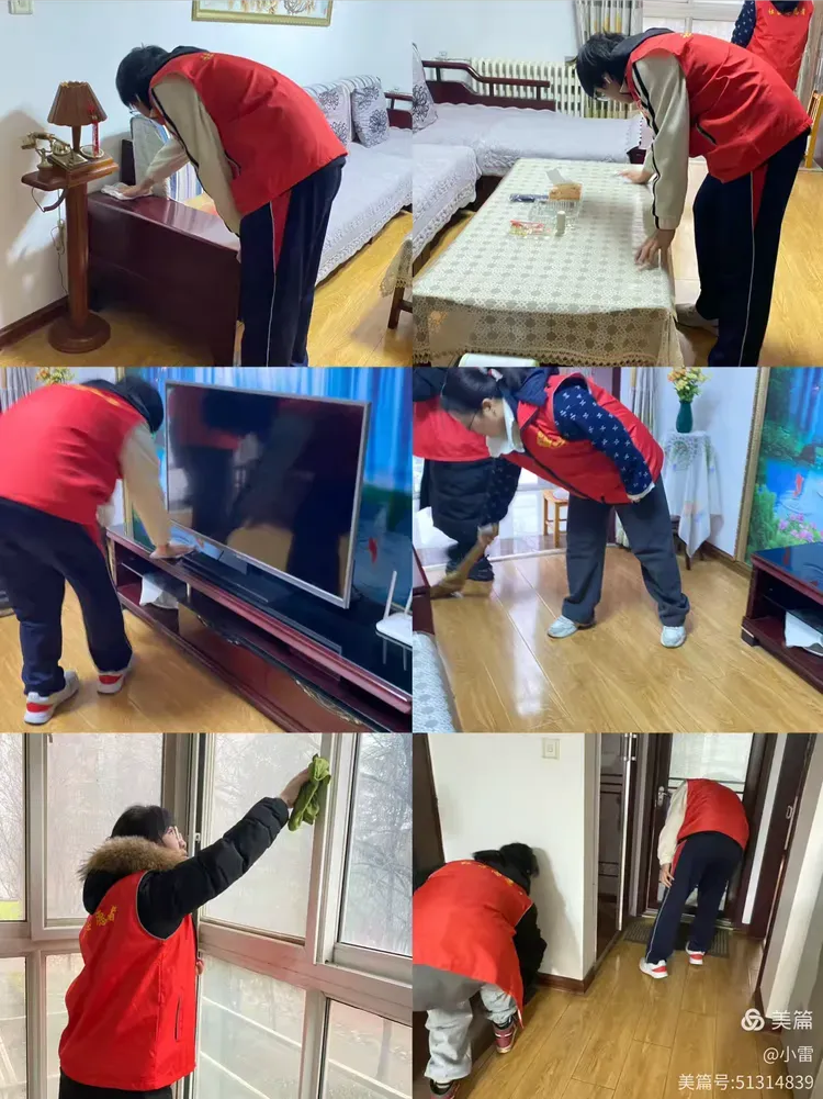 社区志愿者一行来到独居老人家中,与阿姨唠家常,详细询问老人最近的身体状况、生活习惯、饮食起居等情况。“聂阿姨,这段时间降温,你要多注意保暖……”居住在渭水茗居5号楼聂建英老人,今年75岁,儿子常年在国外,自己长期独自一人生活,在征得老人同意后,志愿者们有序地帮忙打扫起卫生,擦拭门窗桌椅、整理生活物品等。临走时,嘱咐老人要注意水、电、燃气安全,有困难及时和社区工作人员联系。