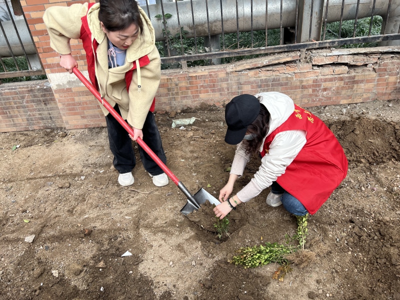植树现场,大家热情高涨,植树工作有序开展。孩子们手持铁锹,在老师的带领下认真挖坑,尽管动作稍显笨拙,却充满干劲。党员及社区志愿者们分工明确,搬运树苗、扶正培土,各环节配合默契,红色马甲在绿树间形成一道亮丽风景线。大家三五人一组,挖坑、植苗、培土、踩实,互相配合,认真栽下每一棵苗木。一番热火朝天的劳动后,一棵棵新栽种的树苗亭亭玉立,展现出勃勃生机,为初春的大地平添丝丝活力。在近1个小时的时间里,100余株“黄杨苗”在此“安家落户”。