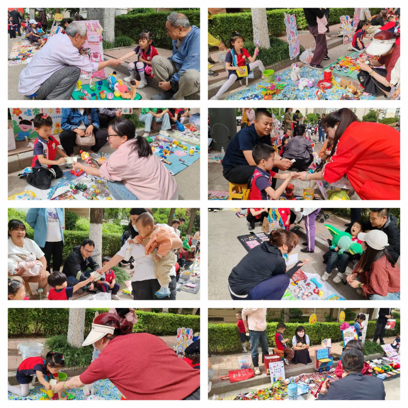 活动现场,小摊主们把家中闲置的玩具、书籍挑选好,打包整理搬运到现场,认真布置自己的摊位。孩子们在家长的陪同下,热情地向过往的顾客介绍和推销自己的商品。家长们也化身“智囊团”,与孩子共同打造特色摊位。通过自主定价、交换闲置物品以及处理交易中发生的各种问题,鼓励小朋友们大胆尝试,勇敢表达。