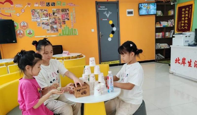 社区坚持“公益为主、低偿为辅”,通过“政府补一点、社会捐一点、志愿献一点”的方式,每月开展“公益服务日”,提供免费理发、义诊、帮办代办等服务,尤其照顾老年人和特殊群体。一位独居老人感动地说:“孩子不在身边,但服务站的孩子们常来看我,帮我办事,就跟自己家人一样。”带孙子的李大爷也爱来服务站,小孙子在绘本角读得入神,他则坐在旁边休息聊天。这一方小天地,既让孩子有了安全好玩的去处,也让老人有了歇脚交流的空间,真切体现了社区对“一老一小”的关怀。