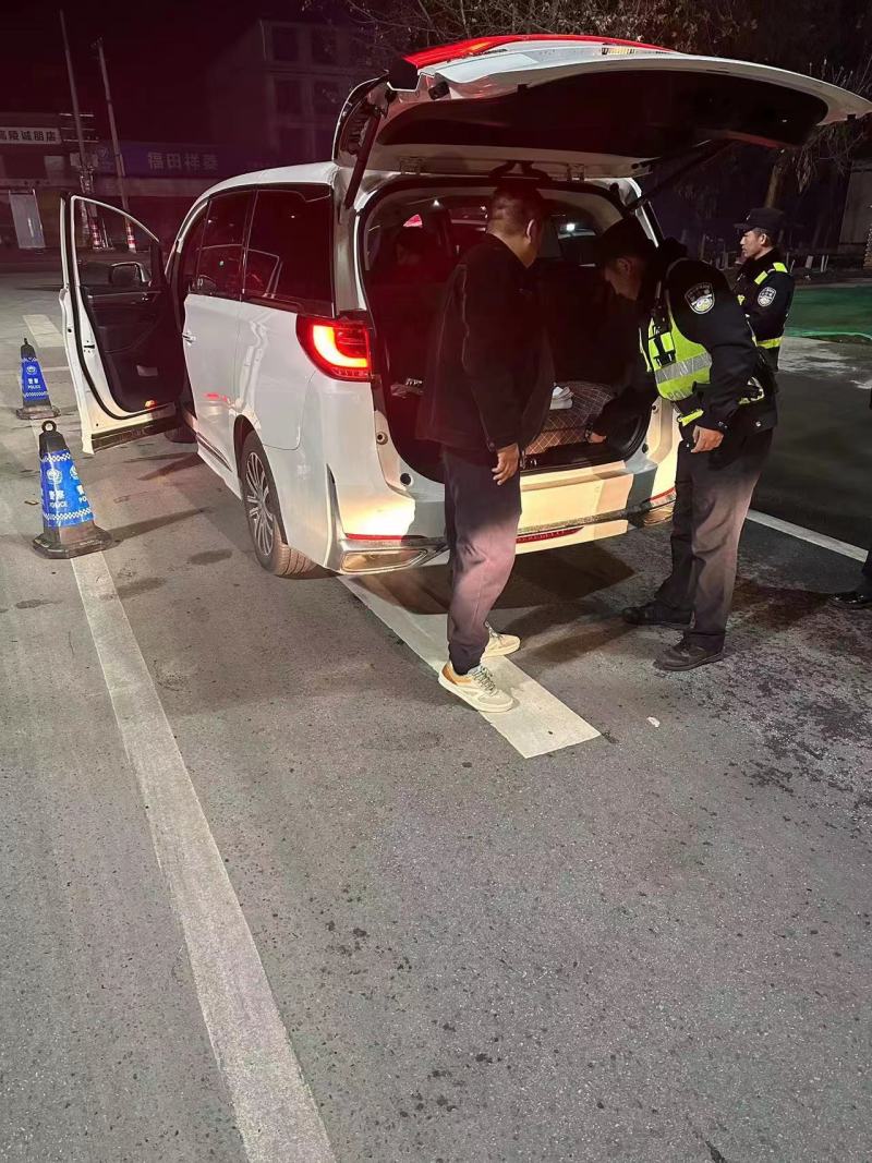 2024年1月17日晚,公安分局鹿苑派出所出动警力6人在辖区重点路段开展武装设卡盘查工作,对于路过车辆随机抽查,加大对可疑车辆,可疑人员的检查力度,积极降控街面三类案件,提高见警率,提高辖区群众的满意度和安全感。并叮嘱司机切莫无证运输,保证行车安全。