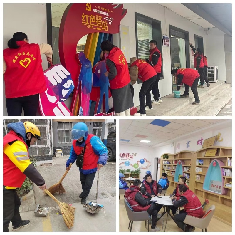 新业态小哥们早早来到了城区社区红色驿站等候活动开始,大家依次领红色马甲、劳动工具,开始了进小区清扫活动。活动中,大家热情高涨、干劲十足。充分发挥不怕脏、不怕累的精神,拿着扫帚、簸箕、抹布、垃圾袋等工具,捡拾和清理白色垃圾、烟头和树叶等零碎垃圾,对三无小区文卫路小区和红色驿站进行全方位打扫。整个清扫过程细致、有序,不落下任何一个角落,不放过任何一片污渍。身穿黄色的美团小哥、蓝色的饿了么小哥、红黑的圆通小哥们,一个个志愿马甲仿佛一簇簇火苗,聚在一起,一幅热火朝天的景象。通过大家的辛勤劳动,小区和红色驿站变得更加整洁。路过的大爷看到后,乐呵呵的竖起了大拇指,"学习雷锋好榜样!