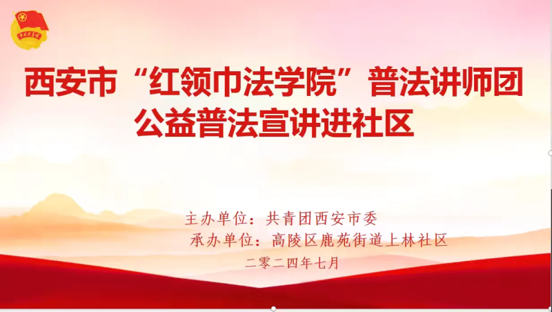 为深入学习宣传贯彻党的二十大精神和习近平法治思想,持续增强青少年法治宣传教育的针对性和实效性,维护青少年合法权益,7月12日,西安市“红领巾法学院”走进鹿苑街道上林社区七彩暑期课堂,向青少年们开展了一堂别开生面的公益普法宣讲。