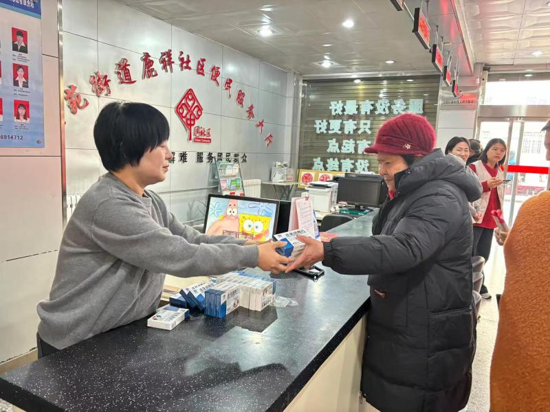 在社区义诊活动现场,一场温暖人心的爱心止咳药免费领取活动也正如火如荼地进行着。不久前,鹿祥社区收到了一批捐赠的连花止咳片。活动当天,社区工作人员积极行动,将一盒盒爱心止咳药亲手发放到居民手中,用实际行动传递着社区对居民的深切关怀。
