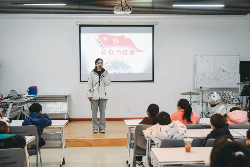 文化馆的老师为大家详细介绍了长征的基本情况。从第五次反“围剿”失败后的战略大转移,到长征途中四渡赤水、飞夺泸定桥等经典战役,再到爬雪山、过草地的艰难险阻,老师生动地再现了那段波澜壮阔的历史,让孩子们深切感受到了长征精神的伟大与坚韧。孩子们认真聆听,不时发出感慨,对革命先辈们的崇敬之情溢于言表。