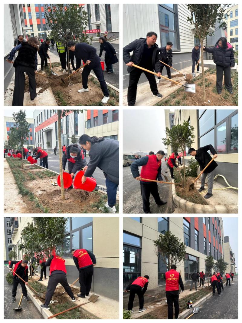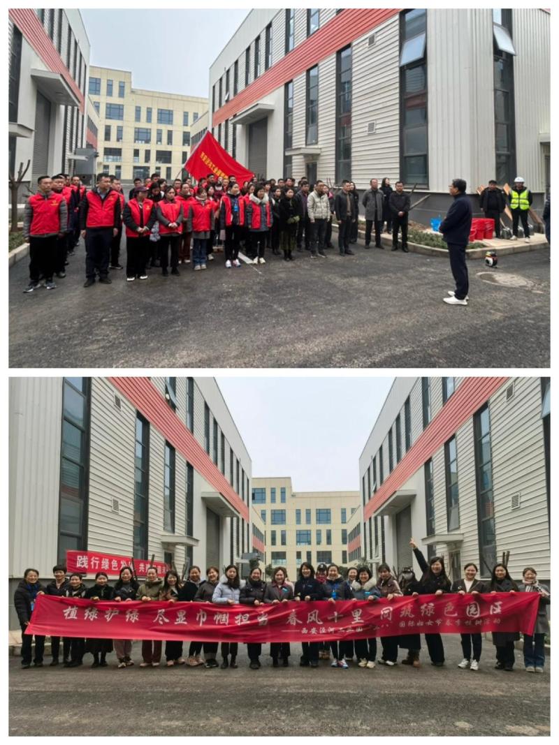 春回大地万物苏,植树添绿正当时。为深入贯彻落实党的二十大精神,践行绿色发展理念,在“学雷锋日”、“三八国际妇女节”、“植树节”等节日到来之际,3月5日上午,西安泾河工业园管委会携手瑞利智能制造产业园举办植树节活动。本次活动以“践行绿色发展共建智造未来”为主题,邀请园区企业党支部书记及女企业家代表参加。活动现场,瑞利智能制造产业园负责人致欢迎辞,表示要始终坚持绿色发展,彰显企业的社会担当与责任。现场的广大干部及企业家朋友们积极响应活动号召,迅速分组,纷纷投身植树活动,挥锹铲土、扶苗填坑、压实土壤、提桶浇水,同心协力种下大叶女贞、樱花、桂花等常绿、观花及芳香树种30余株,为园区增添了一份盎然春意。