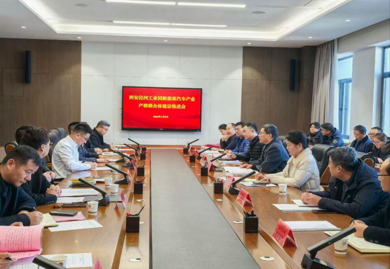 为深入贯彻落实国家关于深化产教融合、促进新能源汽车产业高质量发展的战略部署,1月9日下午,西安泾河工业园新能源汽车产业产教联合体建设推进会在陕西交通职业技术学院(通远校区)顺利召开。会议在陕西交通职业技术学院党委委员、副校长刘晶的主持下进行。高陵区政府党组成员,政协党组副书记、副主席,泾河工业园党工委书记、管委会主任谭胜利,园区管委会相关领导,重点企业代表以及校方领导、专家共同出席会议,齐聚一堂共商产教融合大计,共绘协同发展蓝图。