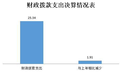 2019年度财政拨款支出25.34万元,占本年支出合计的100.00%。与上年相比,财政拨款支出减少1.91万元,减少8.14%,主要原因是开发经费减少。