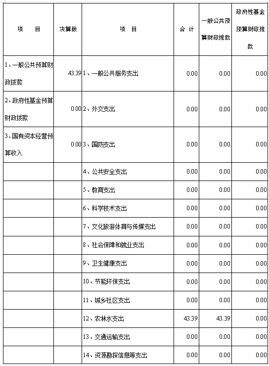 (1)农林水支出43.39万元,主要反映病虫害防治、农产品质量安全检测、森林培育、水利行业业务管理支出。