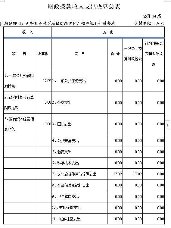 耿镇街道2019西安市高陵区耿镇街道文化广播电视卫生服务站部门决算公开报表.pdf