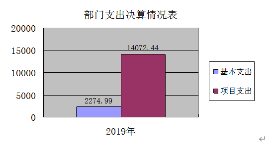 2019年度支出合计16,347.42万元,其中:基本支出2,274.99万元,占13.92%;项目支出14,072.44万元,占86.08%。