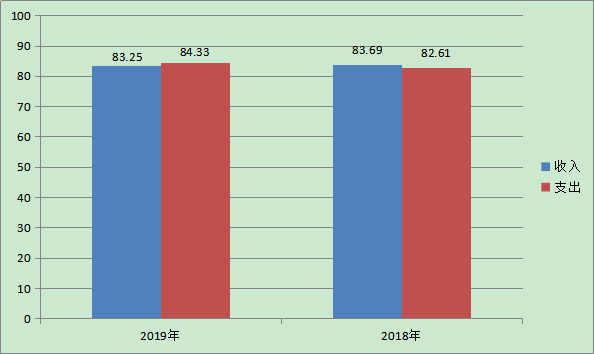 2019年度收入为83.25万元,较上年83.69万元减少0.44万元,降幅0.52%。减少的主要原因:由于本年辞职1人,所有本年度的人员工资、社保支出总体减少。