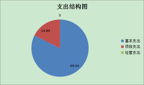2019年度支出合计84.33万元,其中:基本支出69.44万元,占82.34%;项目支出14.89万元,占17.66%;经营支出0万元,占0%。